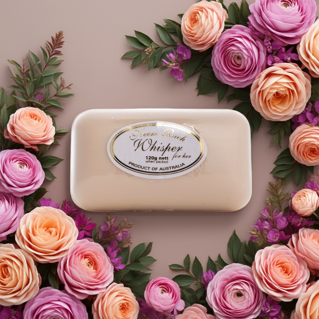 Our ‘Whisper for Her’ soap is French Triple Milled which gives a high quality creamy smooth soap.